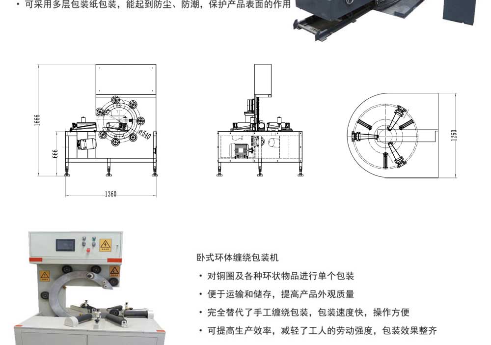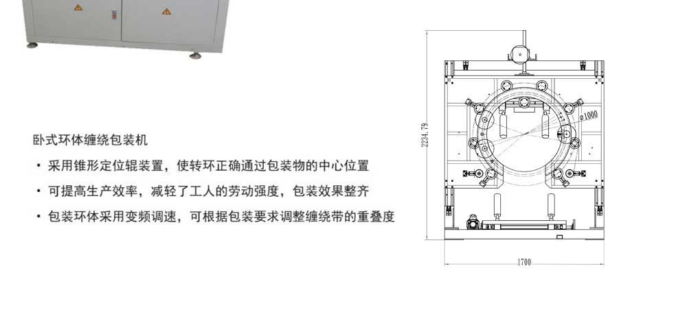 環(huán)體纏繞包裝機(jī)是專門為鋼圈、鋼絲、銅絲、輪胎、帶鋼等金屬環(huán)狀物品而設(shè)計(jì)、制造的一種新穎的纏繞包裝機(jī),其優(yōu)點(diǎn)在于完全替代了手工纏繞包裝,包裝速度快,操作方便,大大提高了生產(chǎn)效率,減輕了工人的勞動強(qiáng)度。包裝效果整齊??刹捎枚鄬影b紙包裝,能起到防塵,防潮,保護(hù)設(shè)備表面的作用。