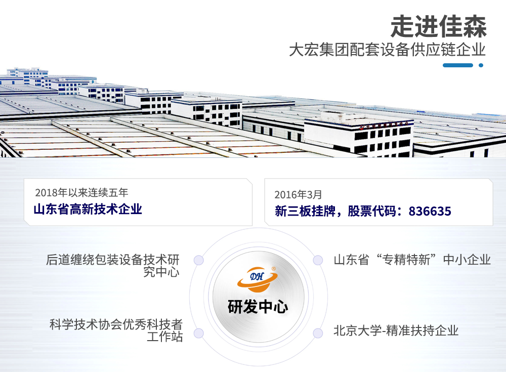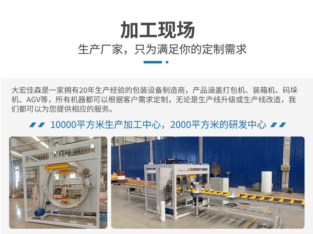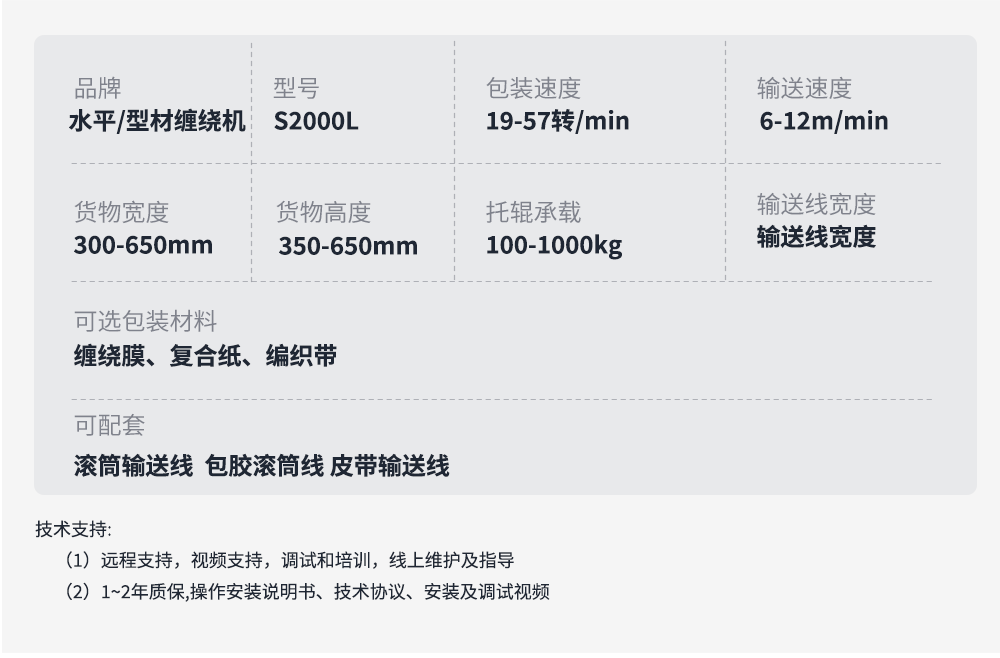 大宏佳森水平纏繞機S2000L適用于建材、型材、管材等行業,配合自動輸送設備,實現產品的高速全自動無人操作的薄膜纏繞包裝,可有效保持貨物穩定,方便運輸及儲存,減少貨物在運送途中破損,以纏繞膜、無紡布、復合紙等為主要包裝材料,對長形棒材、管材、板材、線材等進行纏繞包裝。采用 PLC 可編程控制器控制。采用人機對話觸摸屏。可依包裝要求調整纏繞重疊度。光電感測,自動連續工作,膜架自動復位。安全、穩定、高效、便捷。