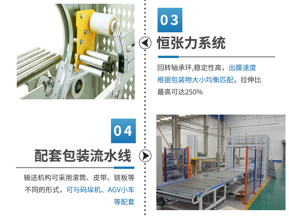 纏繞膜包裝可實現自動斷切膜流水線作業,實現無人化包裝