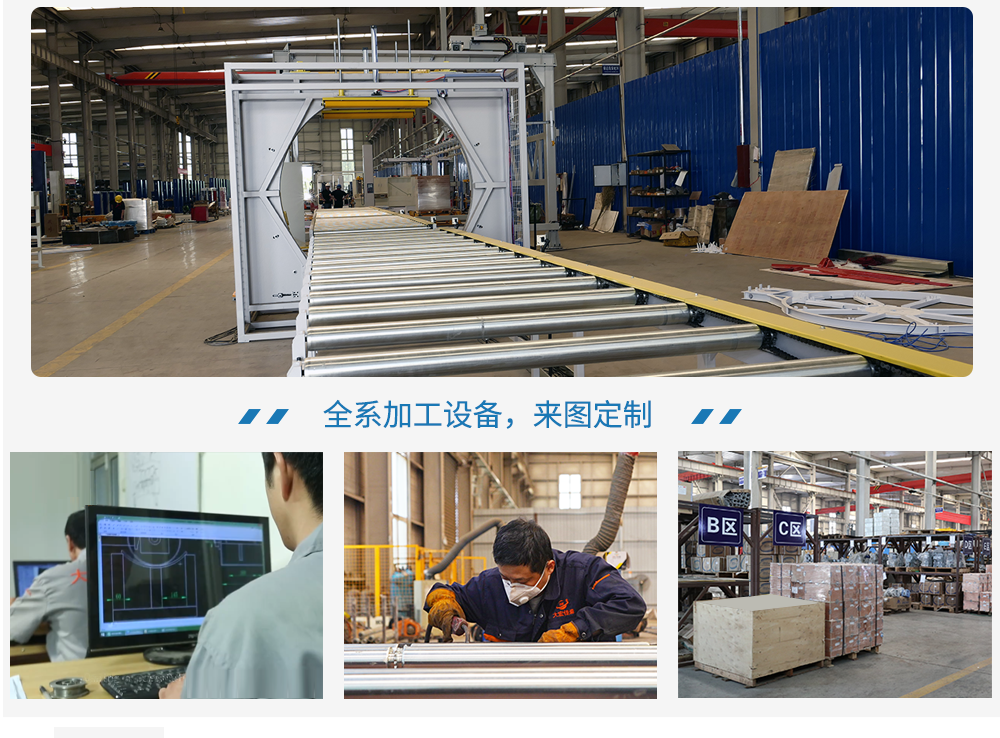 通過圓形鋁環帶動纏繞膜圍繞貨物轉動實現貨物包裝