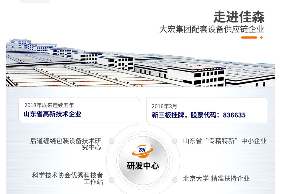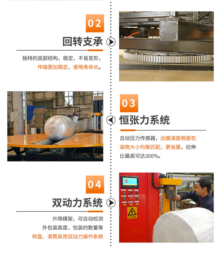 大宏佳森圓筒纏繞機HYP2000F-AU,包裝機采用PLC自動控制,性能可靠,可根據需要改變纏繞方式和次數;轉臺自動復位,保證貨物進出定位準確;用戶可選擇拉伸或預拉伸薄膜裝置;根據客戶需求,選配光電控制頭,自動測高;根據需要設計制造配套生產線。